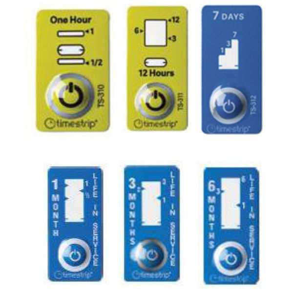 The range spans from short-term indicators (1 hour, 12 hours, 7 days) ideal for healthcare applications such as dressing changes or diagnostic result monitoring, to long-term indicators (1-24 months) perfect for industrial maintenance reminders and filter replacement. In the healthcare sector, Timestrip supports staff in compliance with infection control procedures, while in industrial settings they promote adherence to scheduled maintenance cycles, significantly improving equipment performance and safety.
